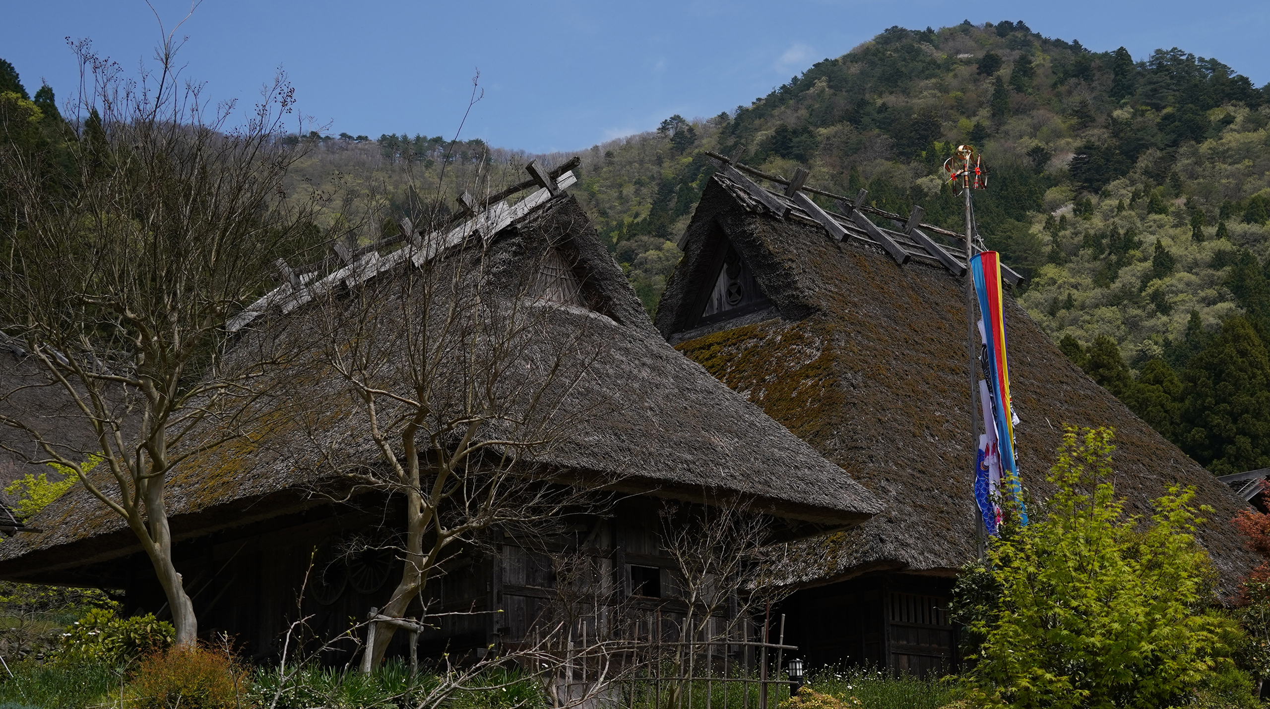 北山型かやぶき民家の母屋・納屋・蔵を公開する資料館では、古くからの農機具、生活道具など約200点以上が展示され、美山のかつての生活を体感できます。